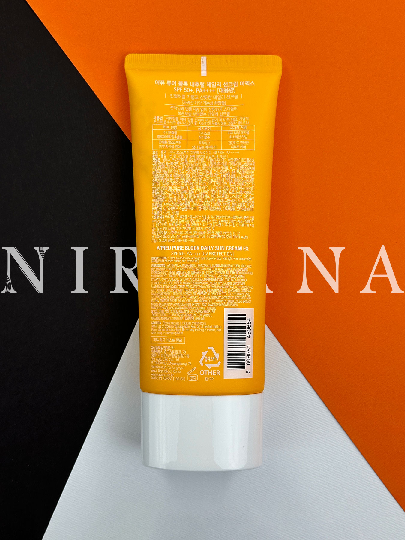 +SPF 50 و +++PA, عصاره آلوئه‌ ورا, عصاره شکوفه توت, عصاره هندوانه, ویتامین E