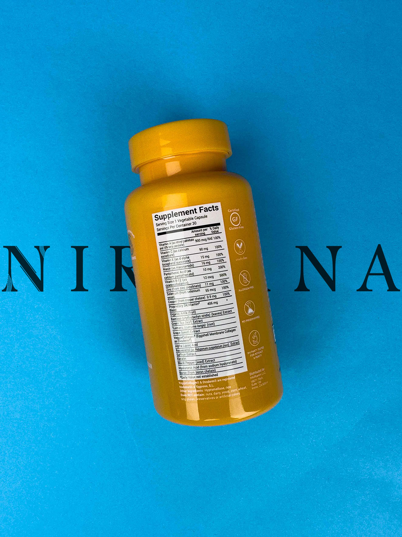 | حاوی | عصارههای گیاهی بامبو، چای سبز، زردچوبه، عصاره انگور و زعفران, کلاژن گیاهی از غشای تخم مرغ, کلسیم آسکوربات, نیاسینامید, ویتامین A, ویتامین C |