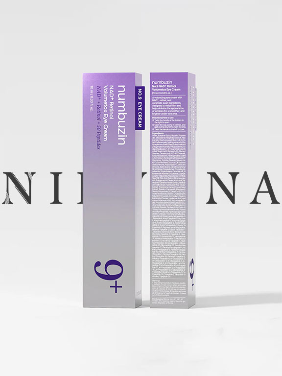کرم دور چشم رتینول نامبوزین شماره 9 Numbuzin No.9 NAD+ Retinol Volumetox Eye Cream یکی از نوآورانهترین محصولات برند نامبوزین است که با ترکیب دو مادهی انقلابی — +NAD و Retinol — بهطور همزمان بر روی تمام نشانههای پیری اطراف چشم اثر میگذارد.