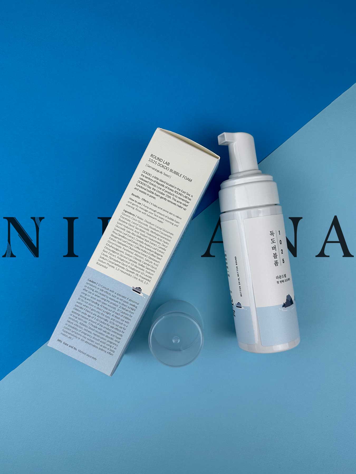فوم پاک کننده عمیق دوکدو ROUND LAB 1025 Dokdo Bubble Foam با فرمولاسیون ملایم و اسیدیّت نزدیک به پوست، پاکسازی کامل و مغذی را به پوست شما هدیه میدهد با فرمولی کمتحریک (mildly acidic) فاقد خشکی پوست است و با خاصیت پاکسازی عمیق، چربی اضافی، آلودگی و سلولهای مرده پوست را برمیدارد بیآنکه پوست را خشک یا تحریک کند. - آب دریایی عمیق از جزیره اولئانگدو (Ulleungdo)